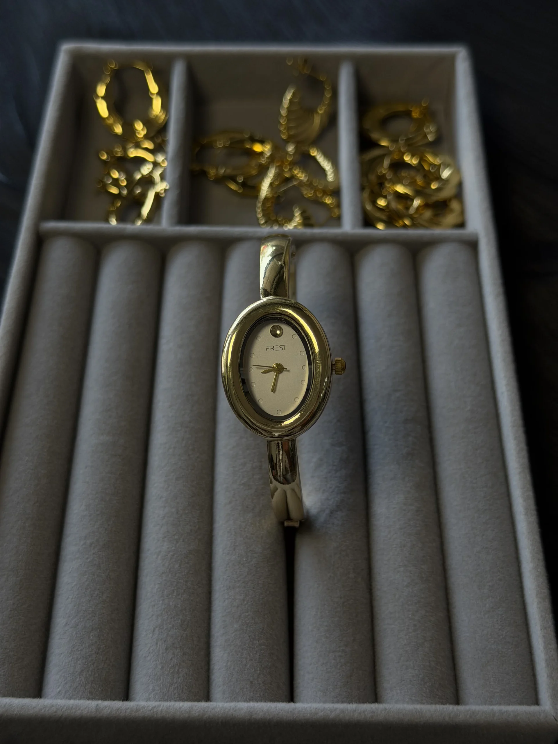 Ellipse shape cuff watch gold quantity
